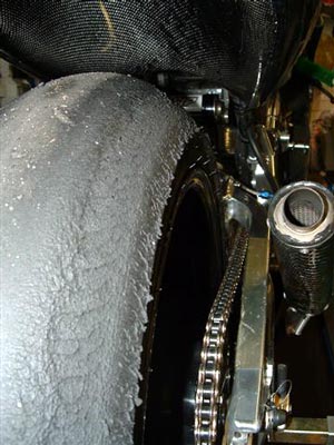 Ein italienischer aprilia-pilot, den ich eigentlich schon mehrere sekunden abgeschüttelt hatte kam plötzlich immer näher und wir wechselten im weiteren verlauf des rennens noch einige male unsere positionen. Leider war mein gebrauchter 701er (mittelhart) hinterreifen bereits nach zwei drittel der renndistanz total am ende und ich konnte nur noch sehr behutsam ans gas gehen. Zum teil fühlte es sich beim herausbeschleunigen an, als wäre ich auf eis unterwegs, so stark driftete das motorrad über das hinterrad weg.