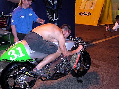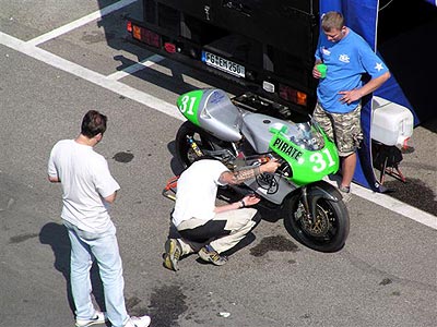 kurzinfo...freies training begann mit einem satten kurbelwellenschaden....im ersten zeittraining 19.platz....im zweiten zeittraining ausfall wegen kupplungsdefekt.....warmup ok......mit einem superstart ins rennen....an 15.stelle liegend wegen eines techn.defekts ausgefallen....gewonnen hat mal wieder...ja genau sekigutchi. |